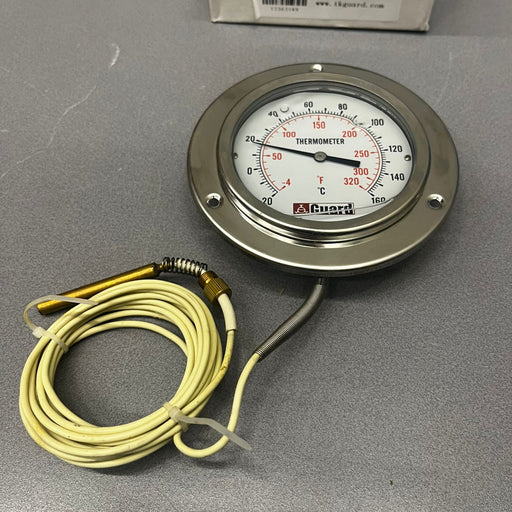 Guard biedt een assortiment van verschillende soorten thermometers voor tankcontainer en tankwagen. Vloeistof gevulde, roestvrijstalen, analoge met 1500mmm tot 3000mm kabel. Ook bieden wij toebehoren zoals de rvs beschermkap of een nieuwe kabel.