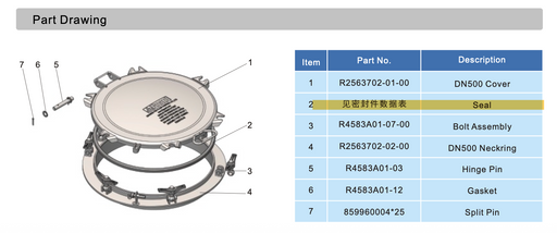DN500 Manlid Assembly 2 Bar - 3 Bar, 6 point