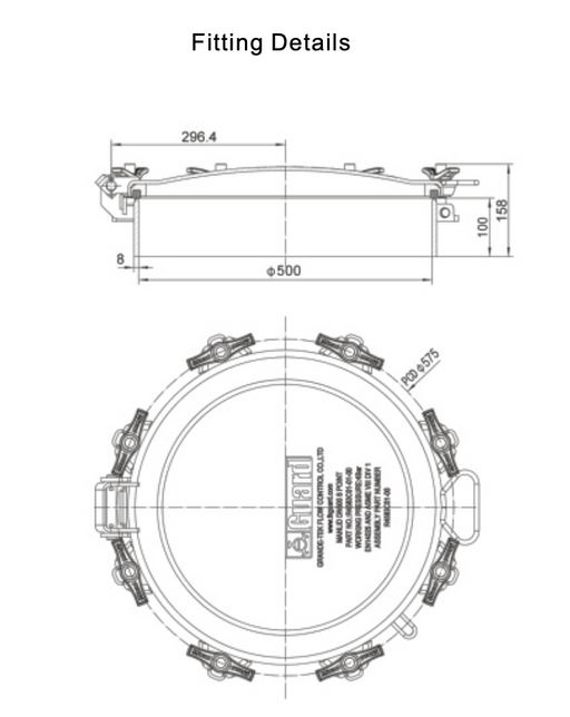 GUARD™Assemblage de trou d'homme profilé 500 mm, fixation 6 points