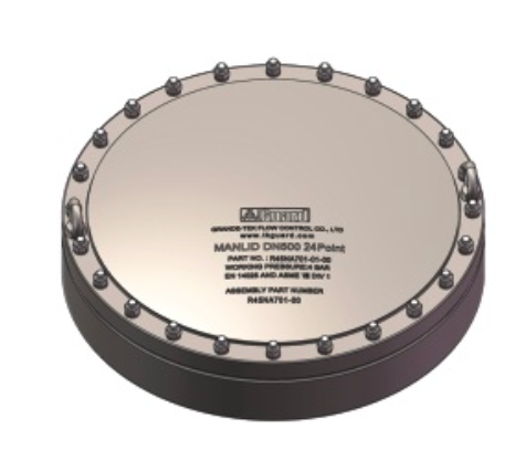 Couvercle de fixation 24 points-24- 12 équidistants sur 535 PCD. Système de structure d'étanchéité à double rainure. Pièces de contact fabriquées en acier inoxydable 316L. Livré avec tous les goujons, écrous et rondelles et joint PTFE.