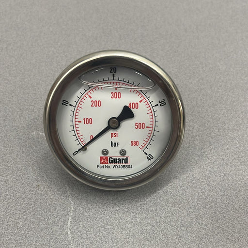 GUARD™Manomètre, 0-40 bar (0-600PSI), 1/4" BSP St.St. composants internes, remplis de glycérine, connexion inférieure (le laiton et l'acier inoxydable so...